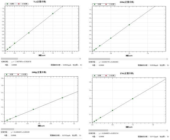 冷焰模式下同位素標準曲線譜圖