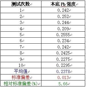 本底多次測(cè)量的平均值及相對(duì)標(biāo)準(zhǔn)偏差: