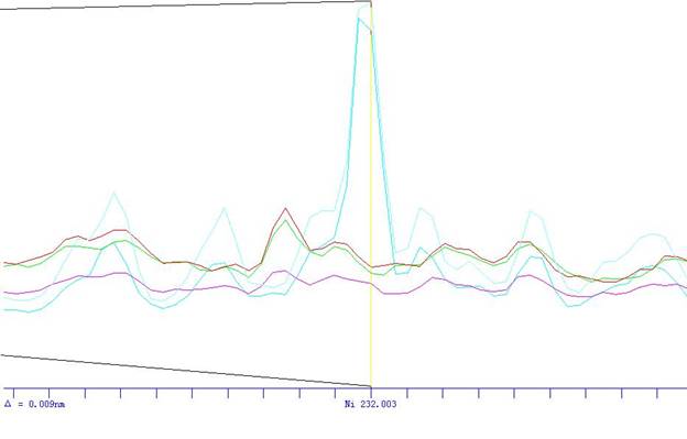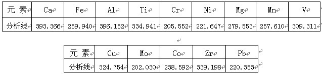 根據(jù)ICP軟件譜線庫(kù)提供所有元素不同譜線,首先選擇被測(cè)元素靈敏度高的譜線,其次考慮不受樣品基體及被測(cè)元素相互之間干擾小的譜線的原則,選擇分析線如下。