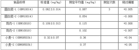 采用濕式消解對(duì)食品樣品進(jìn)行處理,原子熒光光譜儀對(duì)樣品溶液進(jìn)行測(cè)試,測(cè)試結(jié)果準(zhǔn)確可靠,滿足疾控行業(yè)測(cè)試要求。