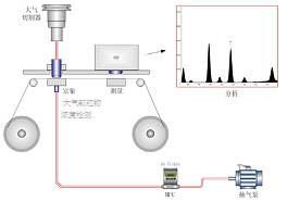 儀器以恒定的工況流量將空氣吸入顆粒物切割器中,以PM2.5為例,動(dòng)力學(xué)直徑在2.5um附近及以下的顆粒污染物進(jìn)入到儀器的富集系統(tǒng)中。經(jīng)過一段時(shí)間的富集后,富集系統(tǒng)自動(dòng)切換成β射線分析系統(tǒng),利用β射線的衰減與顆粒物的質(zhì)量濃度成指數(shù)的關(guān)系,對(duì)顆粒物的質(zhì)量濃度進(jìn)行分析。然后卷膜系統(tǒng)地將富集有空氣顆粒物的濾紙移動(dòng)到X射線熒光分析系統(tǒng),分別利用X射線熒光的能量和強(qiáng)度對(duì)顆粒物中的元素成分進(jìn)行定性和定量的分析。