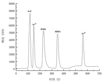 圖4. 5.0μg/L五種砷形態(tài)的混合標準溶液色譜圖