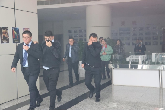 本次演練由公司總經(jīng)理應(yīng)剛擔任總指揮。演練共設(shè)置了警械疏散組、通訊聯(lián)絡(luò)組、搶修搶險組、物資供應(yīng)組、醫(yī)療救援組五個組。下午2點,各小組準備完畢后,演練正式開始。根據(jù)演練預(yù)案,公司四樓倉庫發(fā)生了火災(zāi),剎那間煙霧彌漫。火災(zāi)報警系統(tǒng)的警報聲驟然響起,大樓內(nèi)全體員工聽聞報警聲后迅速切斷電源,在各部門負責人的組織下,沿著大樓樓梯向樓下跑去,迅速逃離火場。整個過程井然有序,五分鐘的時間,大樓內(nèi)工作人員全部逃離火災(zāi)現(xiàn)場,接著參加在公司門口空地舉行的滅火演練。